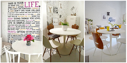 Ide ugyanúgy BJURSTA asztalt választottam, de ezúttal visszatértem a kerek formához, mert a szoba ajtajai miatt itt sokkal kisebb hely jut neki, a falra pedig ezt sem akartam rányomni. Szeretem a szellős, tágas elrendezést, amitől a szoba még nagyobbnak tűnik, erre a panelban is törekedtem (ITT). Most még sötét a fal, és ez vizuálisan összenyomja a teret, de majd meglátjátok, hogy az új falszínnel milyen más lesz az összkép, én már látom magam előtt! Egyébként ez az asztal is könnyen nyitható 6 személyesre, szóval remek, ha pl. vendégek jönnek.