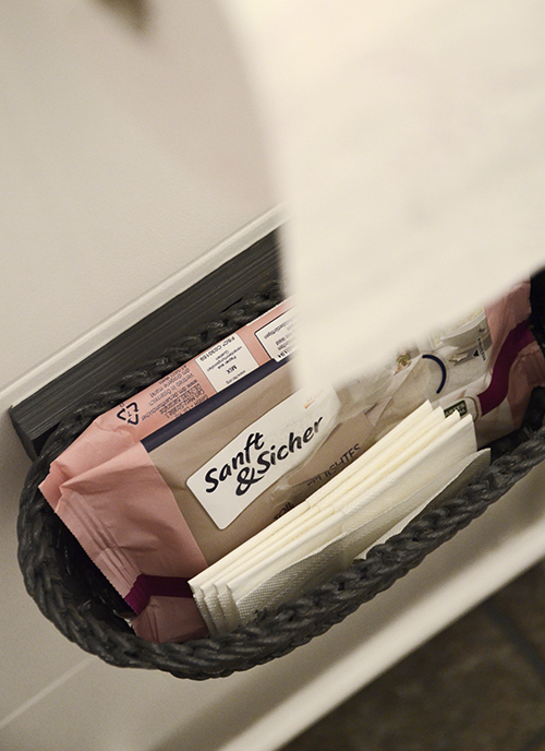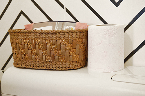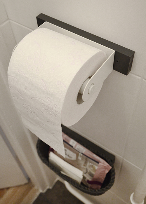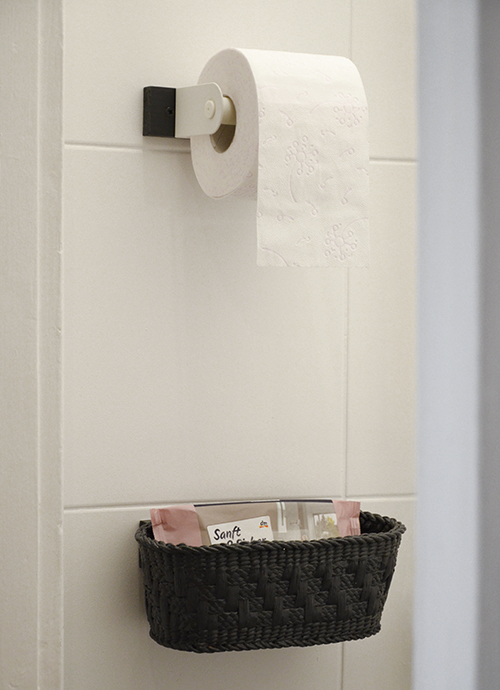 Ami viszont nem került vissza a régi dolgok közül az a papírguriga tartója, így a wc papírt a tartályon tároltam. Nem valami praktikus megoldás, és gagyi az egész összkép, bár a natúr fonott kosár amúgy önmagában nem néz ki olyan rosszul. Ettől persze még át fogom festeni a poszt végére, haha.