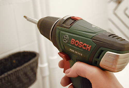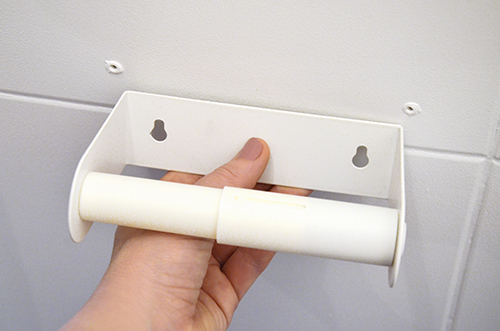 A papírguriga új tartóját már rég felszerelhettem volna, ha nem lettek volna problémák a rögzítési pontokkal. A régi csempében ugyanis (direkt) benne hagytam a tiplit gondolván, hogy majd simán felrakom az új tartót erre. Hát ez nem jött össze…