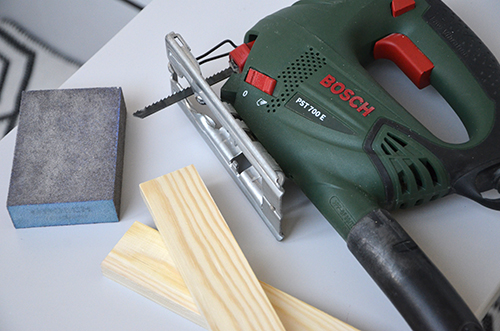 Aztán fogtam és a már jól ismert dekopírfűrésszel leszabtam nem is egy, de mindjárt két darabot. Egyiket a wc papír tartó alá, egyet pedig a kosár alá. A széleket csiszolószivaccsal szépen eldolgoztam.
