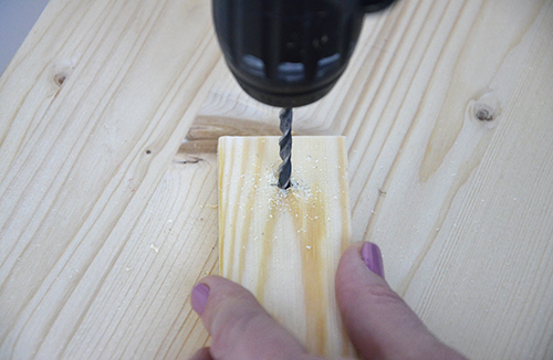 Következő lépésként fúrtam 1-1 lyukat az egyik lécbe (a wc papír tartósba), pont olyan távolságra, mint a csempén. Azért kell előfúrni, mert egyéb esetben a rögzítőcsavar simán szét tudja repeszteni a fát, aztán lehet elölről kezdeni az egészet.