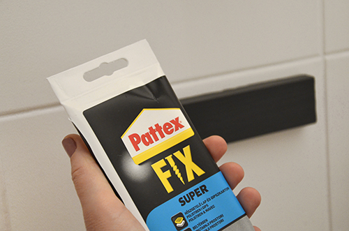 Magát a lécet pedig egyszerűen ráragasztottam a csempére pontosan ugyanúgy, mint a szegőléceket a falra, ITT.