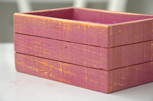 Szóval két rétegben lefestve a ládikát, az egészen más karaktert kapott. Díszként öntapadós ragasztószalaggal ráragasztottam egy bőrből kivágott szivecskét. De lehet rá rakni akár feliratot, címkét, szalagot, masnit, stb…