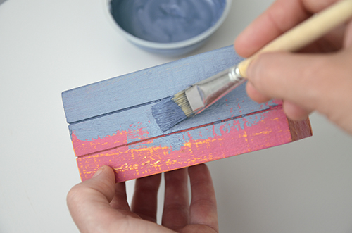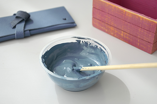Majd fogtam azt a kékre kevert maradék festékemet (szintén akril), amivel korábban a faházhoz készült madáretetőmet festettem le (ITT), és cseppentettem bele egy kis feketét egy valamivel sötétebb árnyalat eléréséhez.