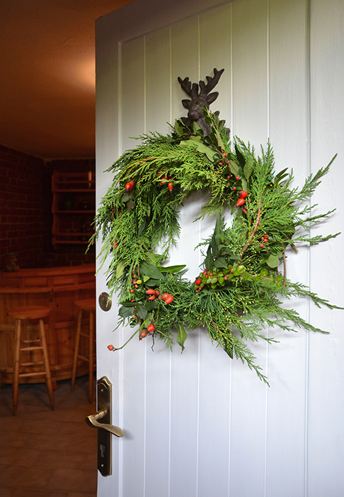A pinceajtó fehérre festésekor felkerült egy új kilincs, sőt, egy klassz szarvasos akasztó is, amire fontam egy szép – picit ünnepi hangulatú – koszorút. Mutatom máris a részleteket.