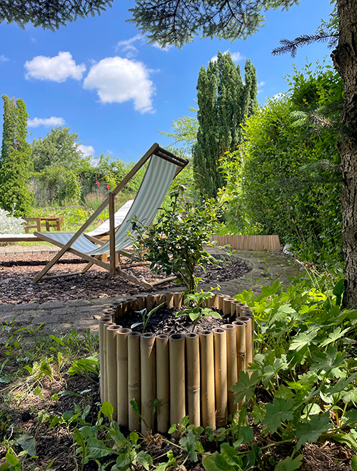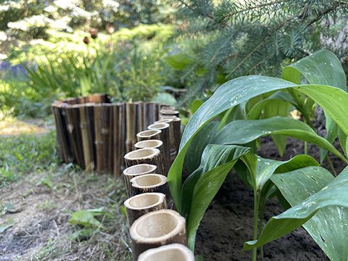 Mutatok még két megoldást, amiket mindössze egyetlen darab bambusz ágyásszegélyből meg lehet valósítani a kert bármely pontján így: