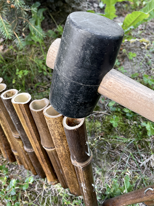 A bambusznád elemeit célszerű gumikalapáccsal leütni, hogy ne roncsoljuk szét az elemeket.
