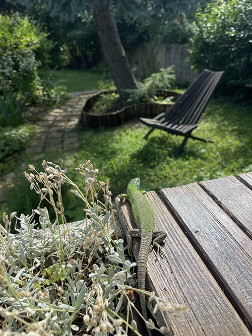 Véletlenül szúrtam ki, hogy a munkálatokat a helyettes műszakvezető gyík felügyelte a kerti panorámás napozóteraszról: