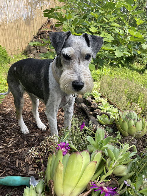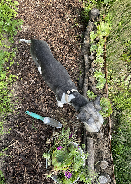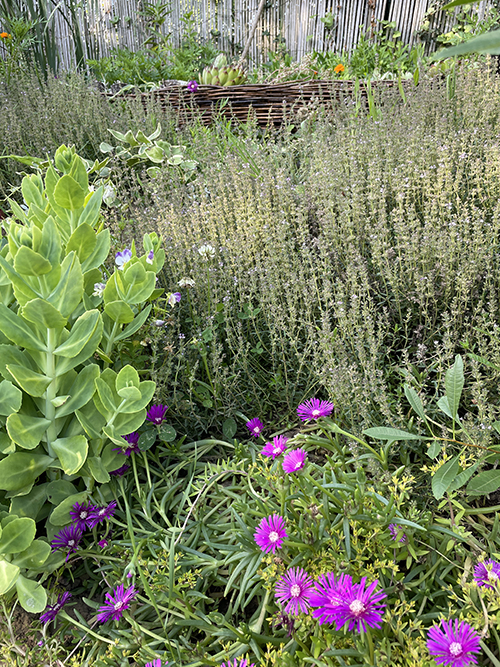 Ezután feltöltöttem földdel a szegély mögötti részt és mindenféle szárazságtűrő növényeket ültettem ide a kert más pontjairól: pl. kövirózsát, varjúhájféléket, lángvirágot, kristályvirágot, amik bírják a tűző napot.