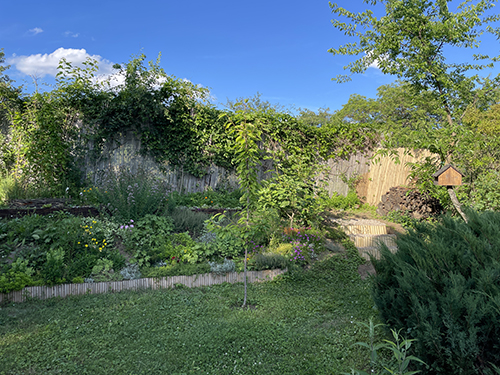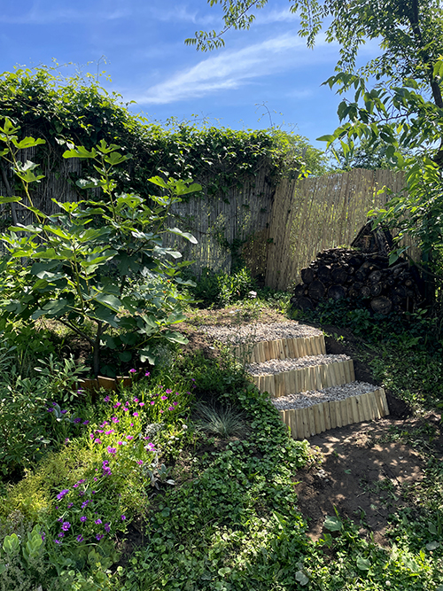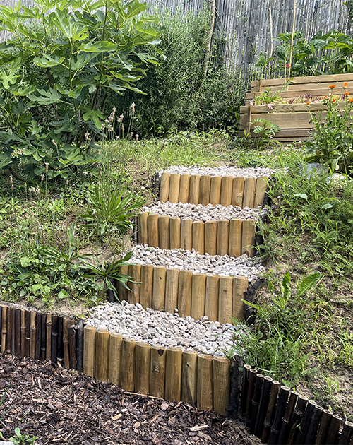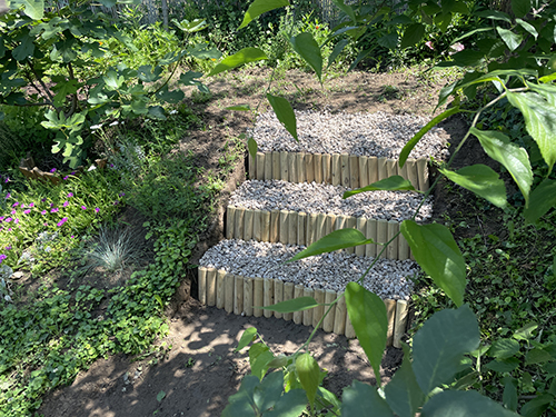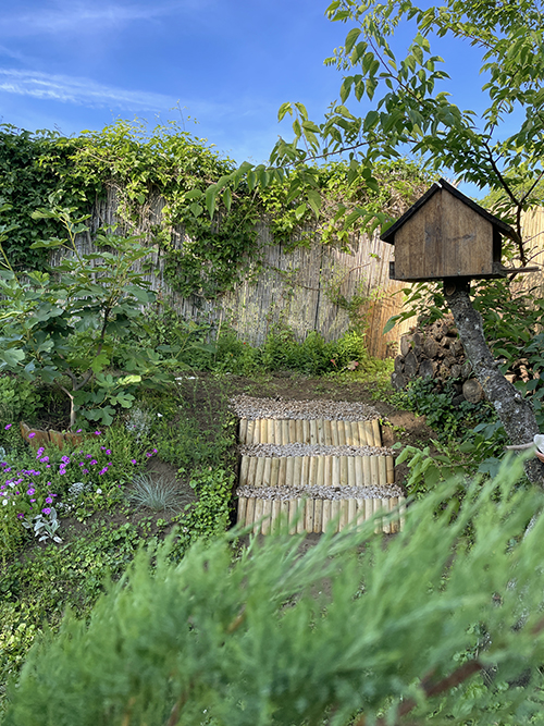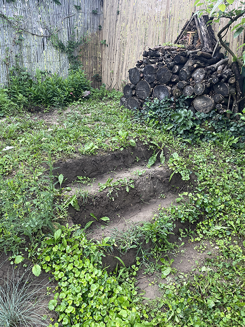 A konyhakertben található lépcsőről akkor nem írtam részletesen, most viszont megteszem, ugyanis elkészítettem szélesebb verzióban a ‘nagytesóját’. Erről a tervemről is írtam márciusban, sőt, ez már tavaly a fejemben volt, szóval már ősszel kialakítottam ásóval a lépcsőfokokat, amit mostanra a természet picit visszahódított.