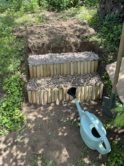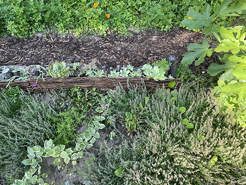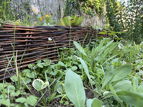 A márciusban leírt terveim között egy csomó minden szerepelt – érdemes elolvasni újra (ITT), mert jó látni, hogy amiket akkor fejben és papíron elképzeltem, most sorra megvalósulnak -, köztük az is, hogy különféle, természetes anyagú ágyásszegélyeket szeretnék majd elhelyezni a kert egyes pontjain, változatos felhasználással.