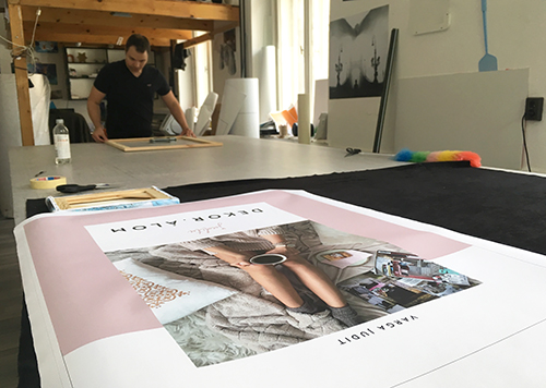Abban a szerencsés helyzetben voltam, hogy alkalmam volt a munkafolyamatot is meglesni, így a nyomtatást és a keretre feszítést és végig követtem: