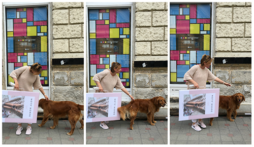 Aztán a kis (nagy) csomagommal el is indultam hazafele, bár még tettem egy kísérletet arra, hogy cuki kutyával pózoljak, ami annyira nem jött össze: