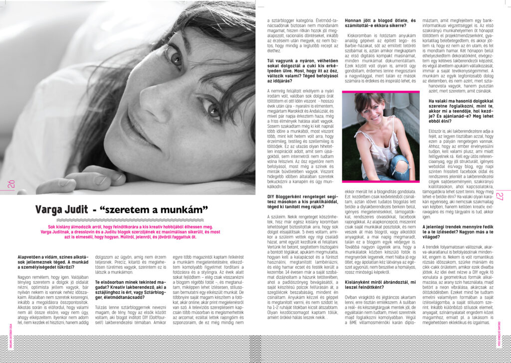Ezen kívül a lakberendező sulim blogjára is készült velem interjú, azt ITT éritek el. Sőt, nem olyan régen – az azóta sajnos már megszűnt – Dreams magazin is készített velem interjút.