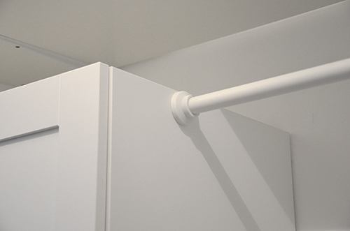 Ezt végül egy kihúzható, rugós zuhanyrúddal oldottam meg, amin korábban a függönyök lógtak itt egy-egy oldalon.